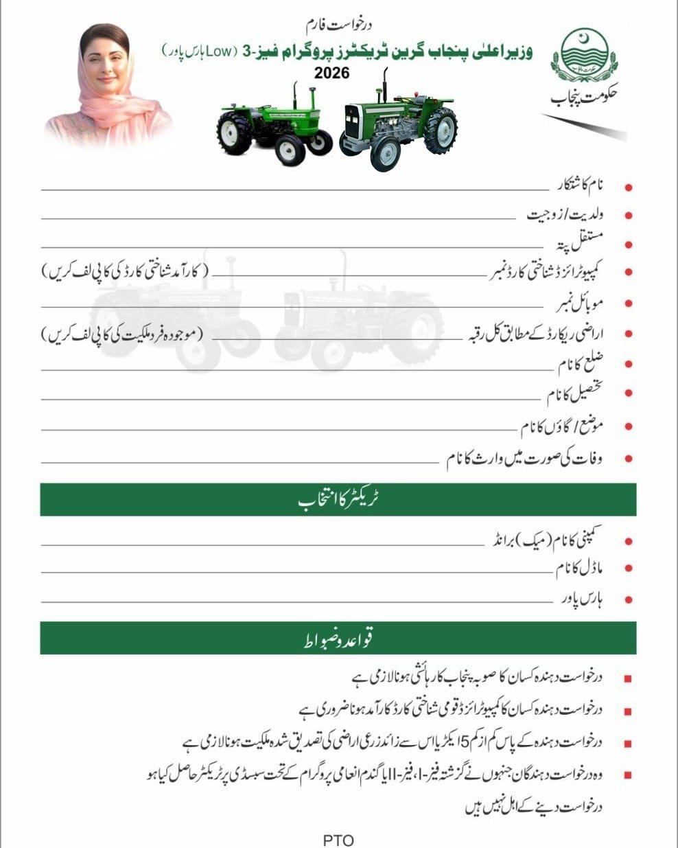 The Green tractor scheme gts phase 3 application form pakistan is now one of the most searched topics among farmers who want to benefit from government tractor subsidies. This application form is designed for eligible farmers in Punjab who aim to improve farming efficiency through modern machinery. By filling out the official form correctly, farmers can become part of a transparent selection process that supports agricultural growth across Pakistan.